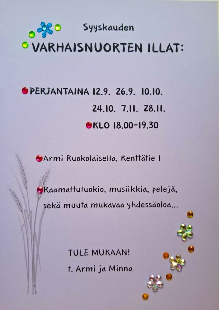 Varhaisnuorten illat Hyrynsalmella pe klo 18 (10.10, 24.10, 7.11, 28.11)