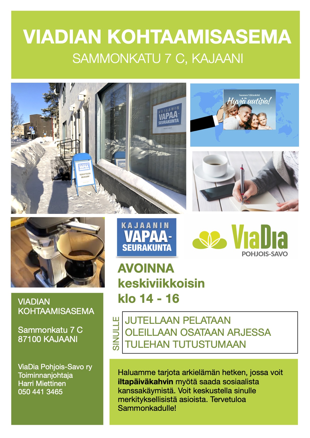 ViaDia Pohjois-Savo ry on Vapaakirkon diakoniajärjestö, jonka kattojärjestönä toimii valtakunnallinen ViaDia ry. ViaDia Pohjois-Savon toimipisteissä Kaavilla, Kuopiossa, Juankoskella, Siilinjärvellä, Suonenjoella, ja Varkaudessa kehitetään ja tuotetaan työvoimapalveluja, kuntouttavaa työtoimintaa ja sosiaalista kuntoutusta. Toimipisteissä rakennetaan toimintamalleja, jotka perustuvat asiakkaille merkitykselliseen vertaistukeen ja osallisuuteen moniammatillisen tuen turvin. ViaDian toimintaa pilotoidaan Kajaanissa kohtaamisasema konseptilla, joka vähentää syrjäytyneisyyttä ja antaa sisältöä arkipäivään.